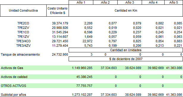 La solicitud tarifaria presentada por Gas And Oil Engineering S.A. ESP. incluye las proyecciones de demanda, las proyecciones de gastos de AOM de distribución y el Programa de Nuevas Inversiones, clasificadas según el listado de unidades constructivas establecido en el Anexo No. 1 de la Resolución CREG 011 de 2003.