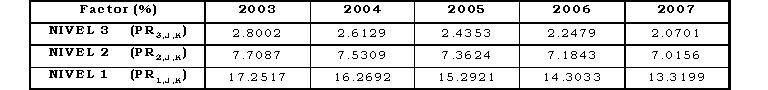 Artículo 5. Factores de Pérdidas. Los factores para referir las medidas de energía al STN y los usados para referir las medidas de energía en el Nivel de Tensión 1 a los niveles de tensión 3 y 2, de que trata el Anexo No 10 de la Resolución CREG 082 de 2002 y que aplican en el sistema operado por RUITOQUE S. A. E.S.P. son: