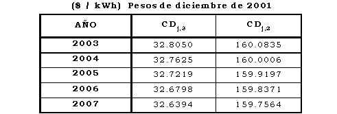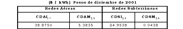 - Cargo de transición para el primer mes de aplicación del Cargo Máximo de Nivel de Tensión 2 aprobado en esta Resolución: 40.3686 $/kWh (pesos de diciembre de 2001).