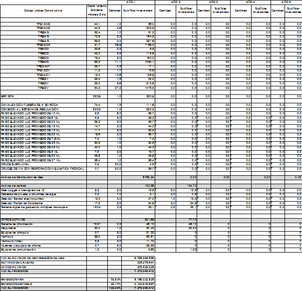 La solicitud tarifaria presentada por PROVISERVICIOS S.A. E.S.P. incluye las proyecciones de demanda, las proyecciones de gastos de AOM de distribución y el Programa de Nuevas Inversiones, clasificadas según el listado de unidades constructivas establecido en el Anexo No. 1 de la Resolución CREG 011 de 2003.