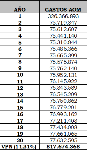 Valor Presente de los gastos de AOM, con nivel de eficiencia