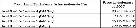 Artículo 1. Costo Anual por el uso de los activos del Nivel de Tensión 4. El Costo Anual por el Uso de los Activos del Nivel de Tensión 4 operados por la empresa Central Hidroeléctrica de Caldas S.A. E.S.P., calculado en la forma establecida en la Resolución CREG 097 de 2008, es el siguiente: