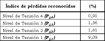Artículo 6. Pérdidas reconocidas. Las pérdidas reconocidas para cada nivel de tensión del sistema operado por el OR Central Hidroeléctrica de Caldas S.A. E.S.P., calculadas en la forma establecida en la Resolución CREG 097 de 2008, son: