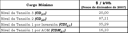 Artículo 2. Cargos Máximos de los niveles de tensión 3, 2 y 1. Los Cargos Máximos de los niveles de tensión 3, 2 y 1 del sistema operado por la empresa Central Hidroeléctrica de Caldas S.A. E.S.P., calculados en la forma establecida en la Resolución CREG 097 de 2008, son los siguientes: