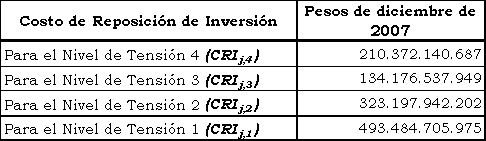 Artículo 5. Costos de reposición de la inversión. Los costos de reposición de la inversión del OR Central Hidroeléctrica de Caldas S.A. E.S.P. para cada nivel de tensión, calculados en la forma establecida en la Resolución CREG 097 de 2008, son los siguientes:
