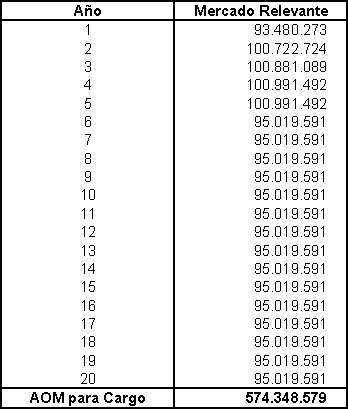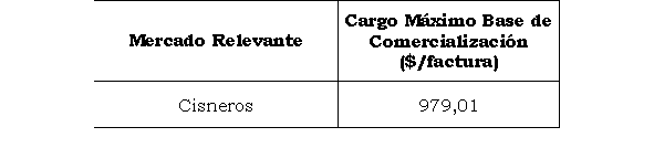 ARTÍCULO 6°. Cargo Máximo Base de Comercialización. A partir de la vigencia de la presente Resolución, el cargo máximo base de comercialización aplicable en el Mercado Relevante del Artículo 1, es el siguiente.