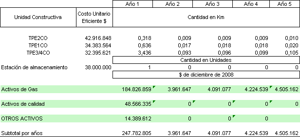 La solicitud tarifaria presentada por Gas And Oil Engineering S.A. ESP incluye las proyecciones de demanda, las proyecciones de gastos de AOM de distribución y el Programa de Nuevas Inversiones, clasificadas según el listado de unidades constructivas establecido en el Anexo No. 1 de la Resolución CREG 011 de 200.