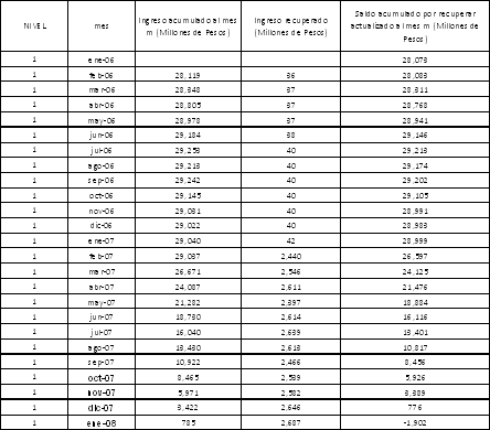 Que la Comisión, con base en la información allegada a la actuación correspondiente a las ventas reportadas en el SUI entre el mes de enero de 2006 y el mes de diciembre de 2007, realizó el balance para ELECTROCOSTA S.A. E.S.P., entre los ingresos dejados de percibir y los ingresos recuperados por la aplicación de los cargos máximos transitorios aplicados a los niveles de tensión 3,2 y 1, durante el mismo periodo, con un saldo a favor de la empresa de $4.380.315.344, según se puede apreciar en las siguientes tablas: