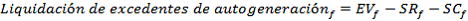 Excedente valorado para el periodo de facturación f, calculado mediante la siguiente expresión: