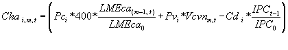 Cha i,m,t : Componente del precio del cilindro de i libras de capacidad que refleja el valor de recuperación de la chatarra del cilindro destruido que ha sido reemplazado, correspondiente al mes m del año t, expresado en pesos colombianos