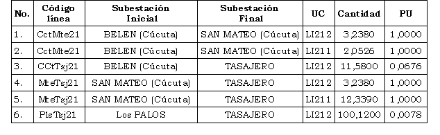 | 6 | TASAJERO | SE219 | 1,00000 |