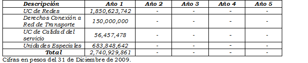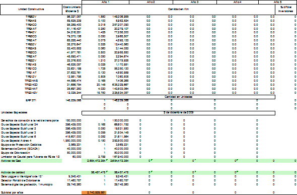 La solicitud tarifaria presentada por la empresa incluye las proyecciones de demanda, las proyecciones de gastos de AOM de distribución y el Programa de Nuevas Inversiones, clasificadas según el listado de unidades constructivas establecido en el Anexo No. 1 de la Resolución CREG 011 de 2003.