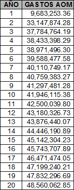 Valor Presente de los gastos de AOM, con nivel de eficiencia | 319,787,313 |