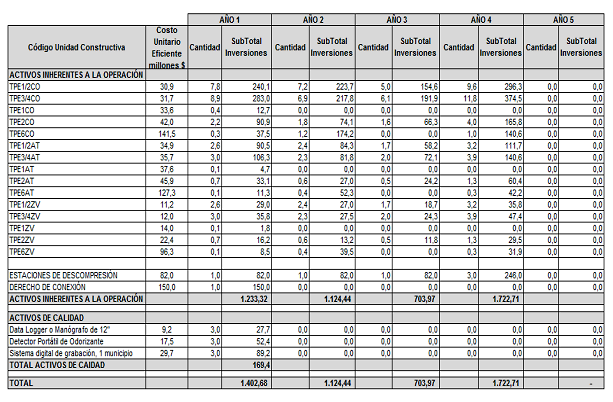 La Empresa, mediante la comunicación en cita reportó a la CREG las proyecciones de demanda, las proyecciones de gastos de AOM de distribución y el programa de nuevas inversiones, clasificadas según el listado de unidades constructivas establecido en el Anexo No. 1 de la Resolución CREG 011 de 2003.