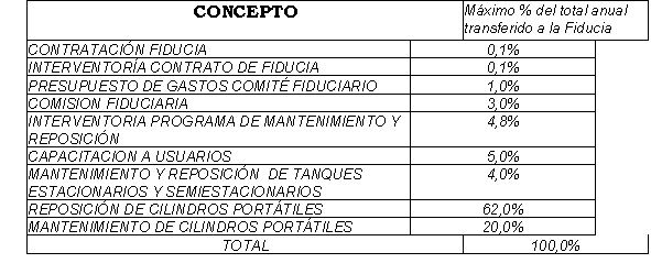 Que la distribución anual de los recursos del Margen de Seguridad contempla los recursos para ejecutar las cantidades de reposición y mantenimiento establecidas regulatoriamente, así como los recursos para atender las demás actividades necesarias para ejecutar el programa de mantenimiento y reposición tales como: i) administración de los recursos del margen de seguridad (fiducia y comité fiduciario), ii) interventoría técnica de los trabajos que deban realizarse en desarrollo de este programa y iii) capacitación de usuarios del servicio público domiciliario de GLP que se requiera para apoyar el desarrollo del programa.