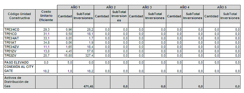 Que la empresa PROVISERVICIOS S.A. E.S.P., mediante comunicación con radicado CREG E-2007-005377 del 6 de julio de 2007, reportó a la CREG las proyecciones de demanda, las proyecciones de gastos de AOM de distribución y el programa de nuevas inversiones, clasificadas según el listado de unidades constructivas establecido en el Anexo No. 1 de la Resolución CREG 011 de 2003;