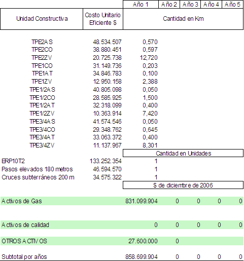 Que la solicitud tarifaria presentada por Gases del Llano S.A. ESP. incluye las proyecciones de demanda, las proyecciones de gastos de AOM de distribución y el Programa de Nuevas Inversiones, clasificadas según el listado de unidades constructivas establecido en el Anexo No. 1 de la Resolución CREG 011 de 2003;