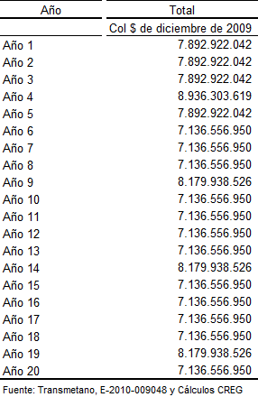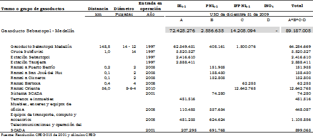 Mediante la comunicación S-2010-005173 de fecha 26 de noviembre de 2010 la CREG solicitó a Transmetano remitir en forma separada la información de los gastos de administración, operación y mantenimiento y demandas asociados a los gasoductos i) Sebastopol Medellín; ii) Oriente Antioqueño; y iii) Barbosa.