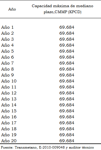 Mediante la comunicación E-2010-011393 de fecha 7 de diciembre de 2010 el auditor técnico radicó en la CREG la copia de una comunicación dirigida a Transmetano en donde resalta algunas diferencias sobre el procedimiento de cálculo de la capacidad máxima de mediano plazo.
