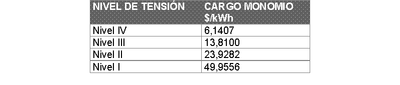 Artículo 1º.Cargos monomios. Los cargos monomios por uso del Sistema de Transmisión Regional y/o Distribución Local operado por la Empresa de Energía de Putumayo S.A. E.S.P. serán los siguientes, a pesos de diciembre de 1996: