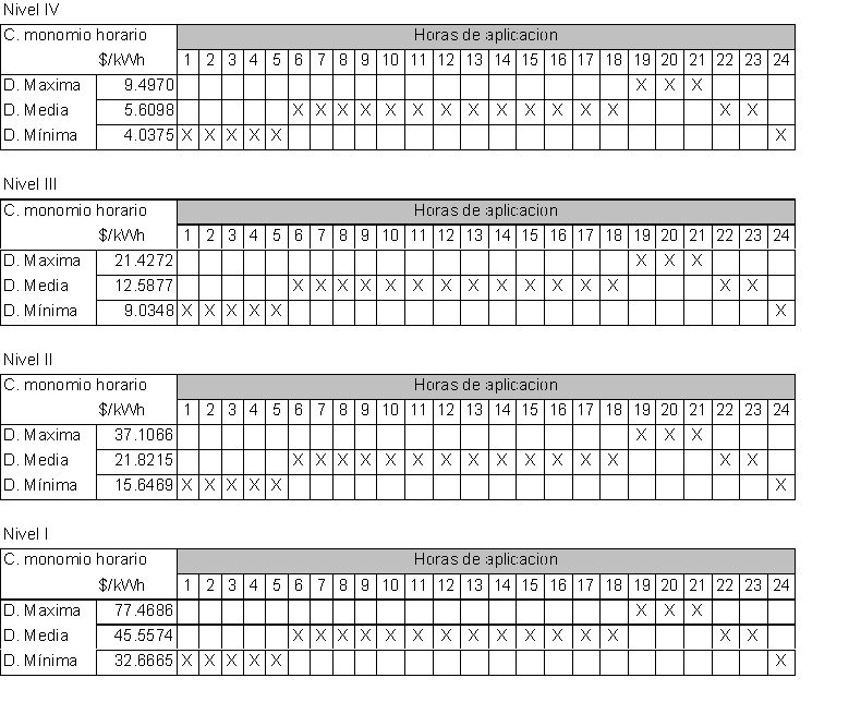 Artículo 2°. Cargos monomios horarios: Los cargos monomios horarios por uso del Sistema de Transmisión Regional y/o Distribución Local operado por la Empresa de Energía de Putumayo S.A. E.S.P., serán los siguientes, a pesos de diciembre de 1996: