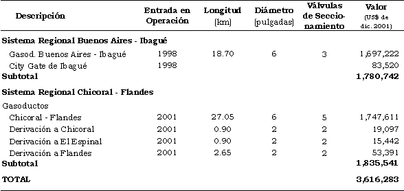 Que mediante comunicación del 11 de junio de 2001, radicación CREG 5170 de 2001, la empresa GASODUCTO DEL TOLIMA S.A. E.S.P. solicitó a la CREG la fijación de cargos regulados para los gasoductos Buenos Aires - Ibagué y Chicoral – Ricaurte - Girardot, conforme a los plazos y demás disposiciones contenidas en la Resolución CREG-001 de 2000; solicitud actualizada mediante comunicación radicada en la CREG con el número 5284 de 2002;