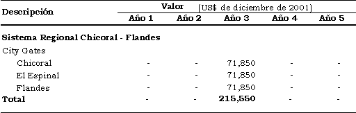 ARTÍCULO 3. INVERSIÓN BASE. La Inversión Base del Sistema de Transporte de GASODUCTO DEL TOLIMA incluye la Inversión Existente y el Programa de Nuevas Inversiones como se indica a continuación: