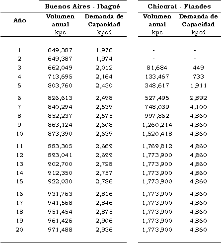 ARTÍCULO 4. DEMANDAS ESPERADAS DE VOLUMEN Y CAPACIDAD. Se consideran la Demanda Esperada de Volumen y la Demanda Esperada de Capacidad presentadas en el Anexo 2 de esta Resolución.