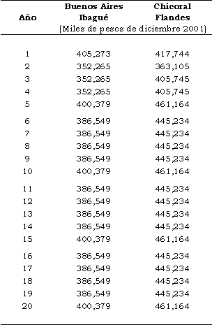 NOTAS: Estos cargos están expresados en dólares del 31 de diciembre de 2001