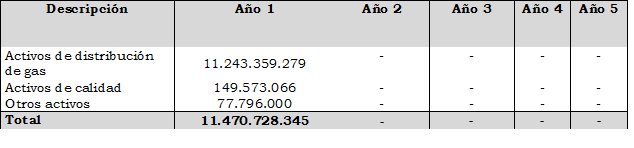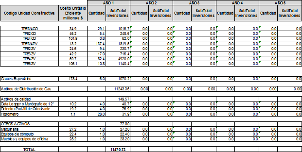 La Empresa, mediante la comunicación en cita reportó a la CREG las proyecciones de demanda, las proyecciones de gastos de AOM de distribución y el programa de nuevas inversiones, clasificadas según el listado de unidades constructivas establecido en el Anexo No. 1 de la Resolución CREG 011 de 2003.