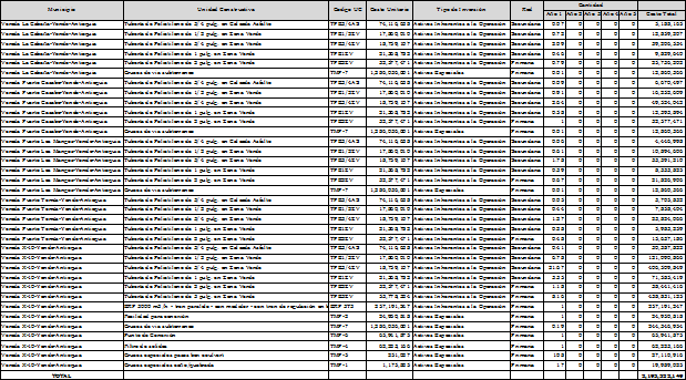 En la mencionada comunicación se allegaron los datos de demanda, gastos de administración operación y mantenimiento AOM y las inversiones clasificadas según el listado de unidades constructivas establecido en el Anexo No. 8 de la Resolución CREG 202 de 2013.