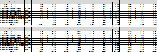 | Valor Presente AOM, con nivel de eficiencia. | 266.960.111 | 263.345.298 | 256.361.213 | 252.552.696 | 280.386.385 |
