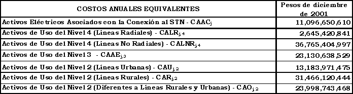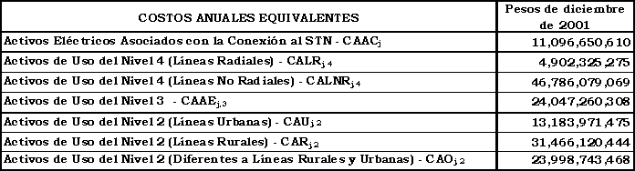 a) Costo anual para remunerar los activos de conexión al STN y de los niveles de tensión 4, 3 y 2, sin aplicar los criterios de eficiencia de que trata el Anexo No 8 de la Resolución CREG 082 de 2002: