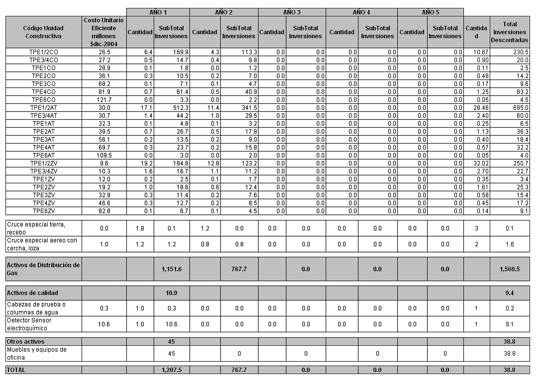 Que la empresa EDALGAS S.A. E.S.P., mediante comunicación con radicado CREG E-2005-005234 del 16 de julio de 2005, reportó a la CREG las proyecciones de demanda, las proyecciones de gastos de AOM de distribución y el programa de nuevas inversiones, clasificadas según el listado de unidades constructivas establecido en el Anexo No. 1 de la Resolución CREG 011 de 2003;