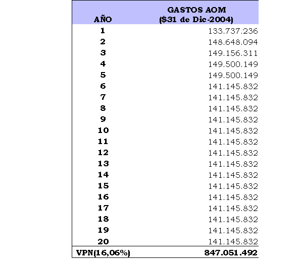 | Valor Presente de los gastos de AOM, con nivel de eficiencia. | 847.051.492 |