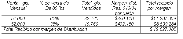 “Actualmente según resolución CREG 013 del 2004 que rige a partir del 1o de marzo de 2004, los márgenes de distribución son los siguientes.