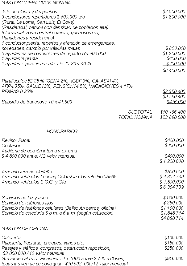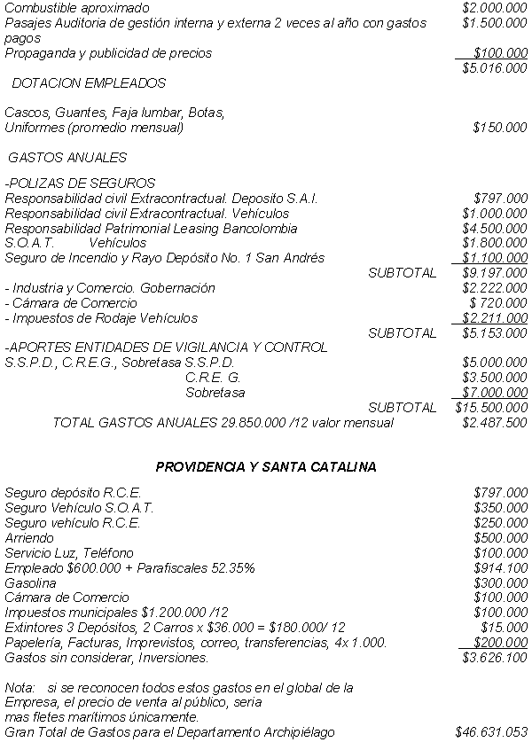 A continuación me permito relacionarle los gastos que tenemos en este mercado periférico, “sui generis” a 485 millas náuticas de el litoral colombiano y tan solo 90 millas de Centro América, para que se pueda comprender mejor, el porque de lo gastos, que como comentario, este es un distribuidor minorista, con inversiones de mayorista.