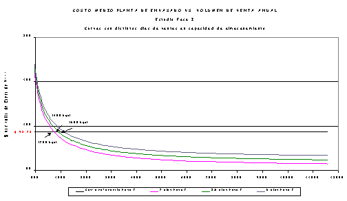 A partir de los márgenes adoptados en la Resolución CREG-035 de 1998, se encontró que el costo reconocido por galón envasado es de $93.78 de enero de 1998, lo cual significa que el nivel de ventas de la planta tipo está alrededor de los 1.2 y 1.6 millones de galones anuales, dependiendo del nivel de almacenamiento instalado. Una envasadora con capacidad de envasado anual menor a 1.2 millones de galones debería asumir los costos de su operación contra las posibles ganancias o utilidades de acuerdo con la tasa de descuento aplicada. Asimismo una envasadora con capacidad de envasado anual superior a 1.6 millones de galones podría tener una mayor eficiencia y por tanto apropiarse de una mayor utilidad.