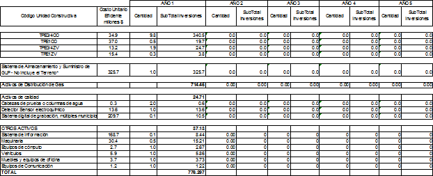 La Empresa, mediante la comunicación en cita reportó a la CREG las proyecciones de demanda, las proyecciones de gastos de AOM de distribución y el programa de nuevas inversiones, clasificadas según el listado de unidades constructivas establecido en el Anexo No. 1 de la Resolución CREG 011 de 2003.