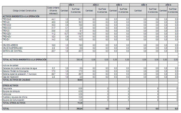 2.1. Inversión Existente. Como inversión existente no se reconoce monto alguno, por tratarse de un mercado nuevo, de conformidad con la información presentada por la Empresa.