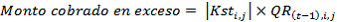 Si el resulta negativo, el monto total del cobro superior al Mst efectuado a los usuarios del servicio, estará dado por la siguiente expresión: