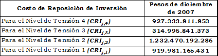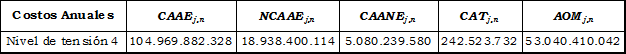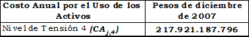 Teniendo en cuenta lo expuesto, para el nivel de tensión 4 se obtienen las siguientes variables, expresadas en pesos de diciembre de 2007: