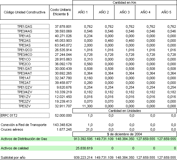 Que la solicitud tarifaria presentada por MADIGAS INGENIEROS S.A. ESP. incluye las proyecciones de demanda, las proyecciones de gastos de AOM de distribución y el Programa de Nuevas Inversiones, clasificadas según el listado de unidades constructivas establecido en el Anexo No. 1 de la Resolución CREG 011 de 2003;