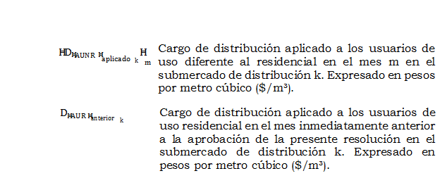 Con base en esa metodología tarifaria se expidieron cargos de distribución y comercialización de gas combustible por red de tuberías a partir del año 2003. Los mercados para los cuales se establecieron dichos cargos se constituyen, a la fecha, como mercados relevantes existentes.