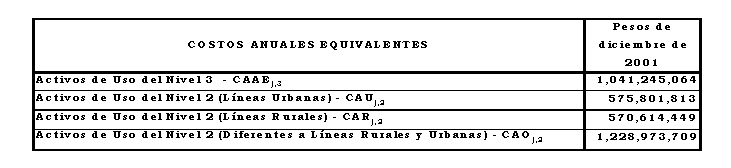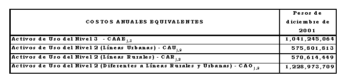 b) Costo anual para remunerar los activos de los Niveles de Tensión 3 y 2, aplicando los criterios de eficiencia de que trata el Anexo No 8 de la Resolución CREG 082 de 2002 y los aprobados mediante Resolución CREG 030 de 2003:
