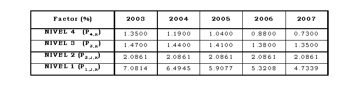 Parágrafo. Los factores de que trata el presente Artículo se aplicarán de acuerdo con la siguiente expresión: