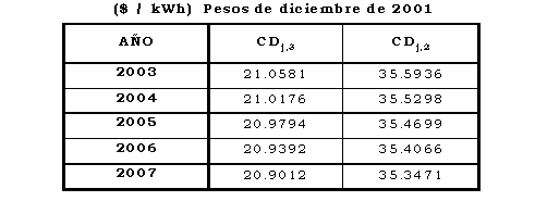 - Cargo de transición para el primer mes de aplicación del Cargo Máximo de Nivel de Tensión 2 aprobado en esta Resolución: 30.1624 $/kWh (pesos de diciembre de 2001).