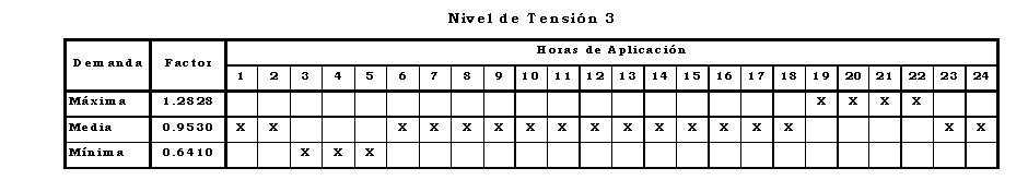 Que a partir de las curvas de carga típicas por Nivel de Tensión presentadas por el OR en la solicitud de aprobación de cargos, la Comisión calculó, siguiendo las disposiciones del Anexo No 9 de la Resolución CREG 082 de 2002, los factores multiplicadores que permiten establecer los Cargos Monomios Horarios a partir de los Cargos Monomios correspondientes;