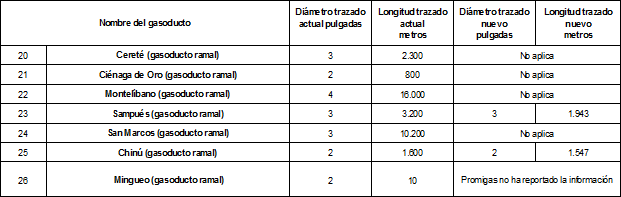 d. En los casos en que Promigas, por posibles cambios en el trazado, prevea el remplazo del gasoducto existente, la longitud (en metros) en que se utilizará el derecho de vía actual.