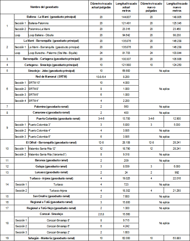 Gasoductos objetos de valoración